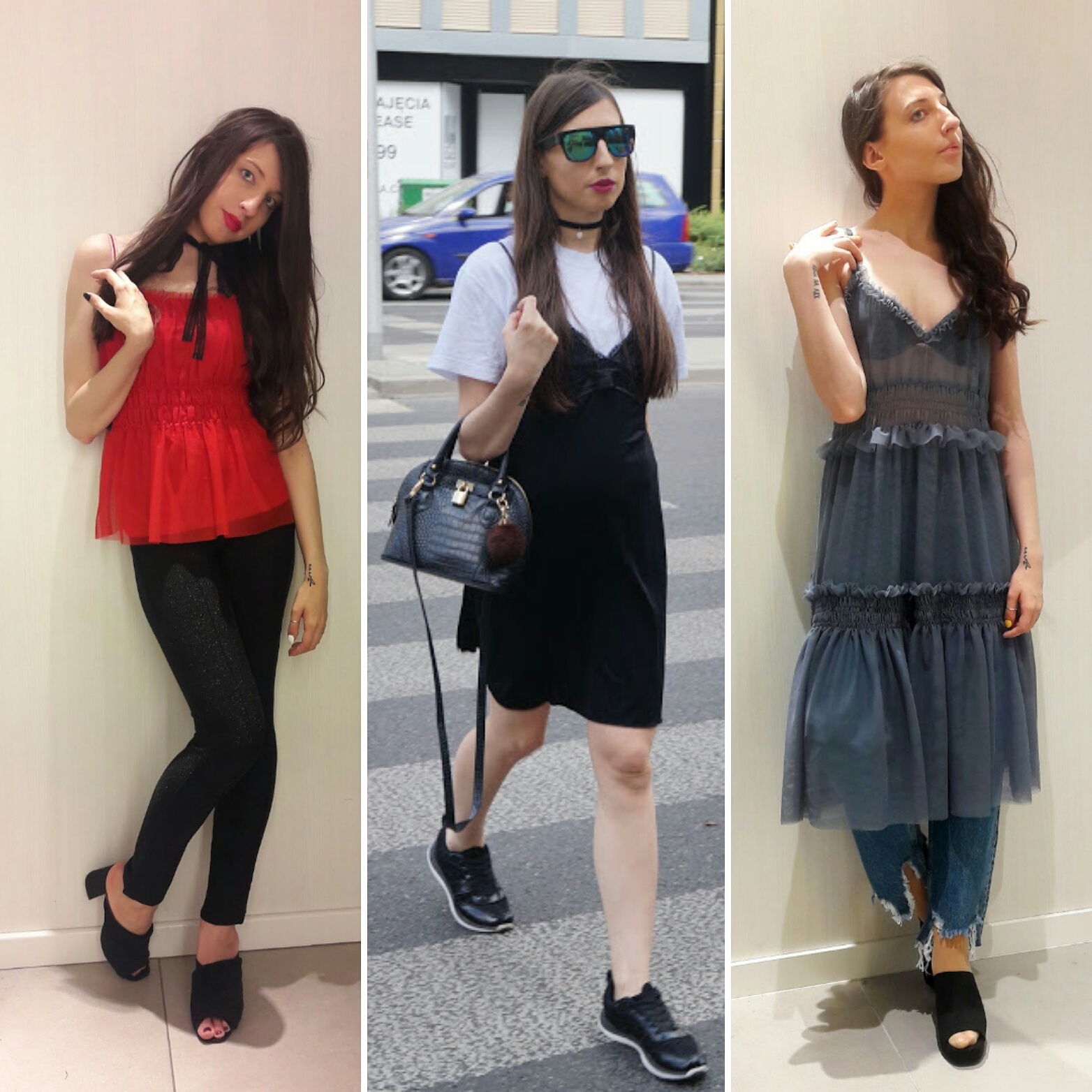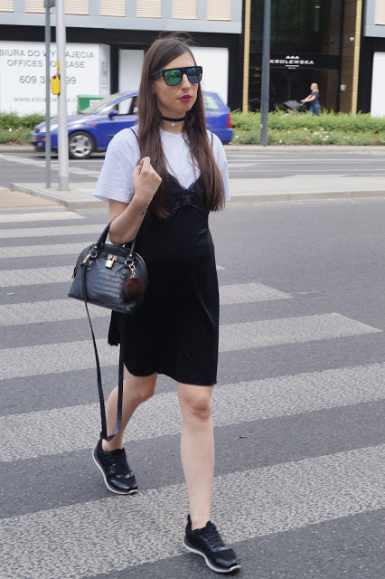 Stylizacja druga – Top -sh, sukienka – Triumph . buty i torebka – DEICHMANN, choker – Stradivarius, okulary – CROPP